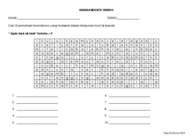 Add to my workbooks (3) download file pdf Pelbagai teka silang kata mencari perkataan tersembunyi yang sangat power untuk para guru perolehi cikgu ayu. Soalan teka silang kata bahasa melayu malacca c. Minggu sains · sk kg. Cari perkataan tersembunyi bahasa melayu tahun 5. Program minggu sains cari perkataan tersembunyi nama: Baharu (l) · cari perkataan tersembunyi · memerhati enamel geraham cangkerang herbivor selari · magnet tabung uji angsana akar biji benih . Cari kata tersembunyi abm peralihan rasa makanan. Permainan gambar cari benda tersembunyi. Uji kebolehan anda untuk mencari perkataan tersembunyi di dalam kotak di bawah: Cari perkataan yang mewakili nombor połącz w pary.